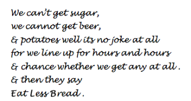 Further government advice encouraged people to avoid waste by buying bread by weight rather than by the loaf, and the Ministry of Food made a sidelong attempt to influence bread consumption by requiring loaves to be at least 12 hours old when sold. There was even an exhortation to eat more slowly, and only when absolutely hungry. In retrospect, it is not surprising that the following adage was penned into Lizzie’s little book by Vera Wright at the later date of June 1917, reflecting sardonically on the continuing shortages: