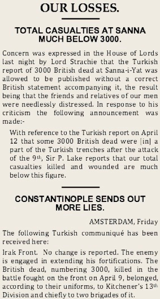 Only one phrase, which comes at the very end of the article, foreshadows the later realisation of the monstrously high price that was paid — “In the fighting that has taken place during the last week, our losses have, of course, been heavy”. In the House of Lords, Kitchener conveyed much the same information in a similarly cagey way, trying his best to spin good news out of bad — “Our casualties during the three days’ fighting, though probably severe, are not nearly so heavy as those suffered by the enemy” (Hansard, 15 March 1915). For Lizzie, at home in London, any attempt to make sense of the various headlines and communiqués must have been a nightmare, given the authorities’ never-ending tussle between the urge to talk up the news and the instinct to suppress it. Yet, for all the bombast, the telling revelation was there to be seen — the losses were undoubtably “heavy”, and, as Lord Kitchener put it, “probably severe”.