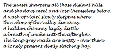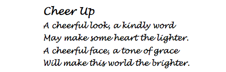 And there are a few more playful entries, such as the following couplet.