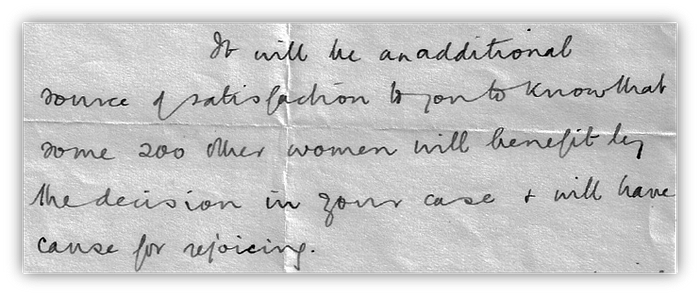 This final letter, from the altruistic Mr Hurst, is a wonderful footnote to an otherwise desperately sad story that stems from the first world war. Lizzie persevered in order to get just treatment, and then found that she had paved the way for the betterment of many others as well. Mr Hurst’s letter mentions that some 200 other women would benefit directly from the decision in Lizzie’s case.