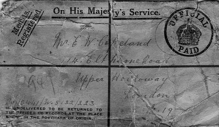 In a sense, these Letters to Lizzie are just fragments of a fuller picture. Perhaps that is always how it is with a chronicle of war and its consequences. Like the Bayeux tapestry, Lizzie’s correspondence needs to be stitched together in some way in order to make sense of the events that unfurled, and to tie in the various vignettes that were stored away — the picture post card from Sergeant Bobbie Rice, with his men on Salisbury Plain at the beginning of the war in 1914; the messages in French from the Western Front, concerning Bobbie’s friend George McLeay; the note from the Royal Engineers at the end of 1916, rebuffing the rumour that Edward George Copeland was a casualty in Mesopotamia; the letter posted later on from the near-mutinous Poona Garrison, just after the signing of the armistice in 1918; and the small chits that accompanied her brother’s posthumous medals, complete with the detachable return slips that went unacknowledged, hinting at a family’s grief over the loss of a young life to disease compounded by a deep resentment regarding the callous refusal to attribute his sickness to war service.