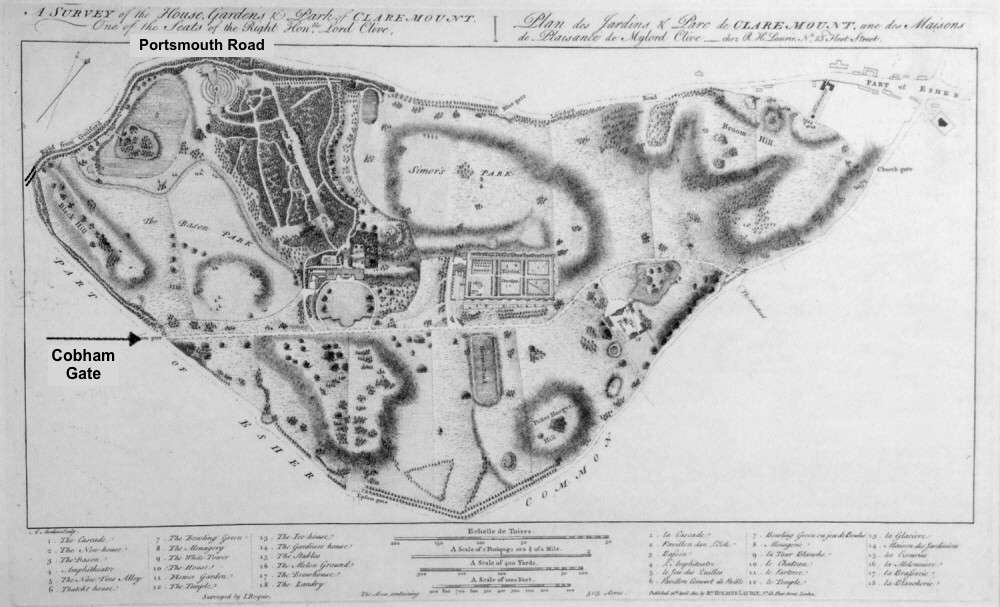 The older survey map is reproduced below, and has been annotated to indicate the Cobham Gate and the old Portsmouth Road.